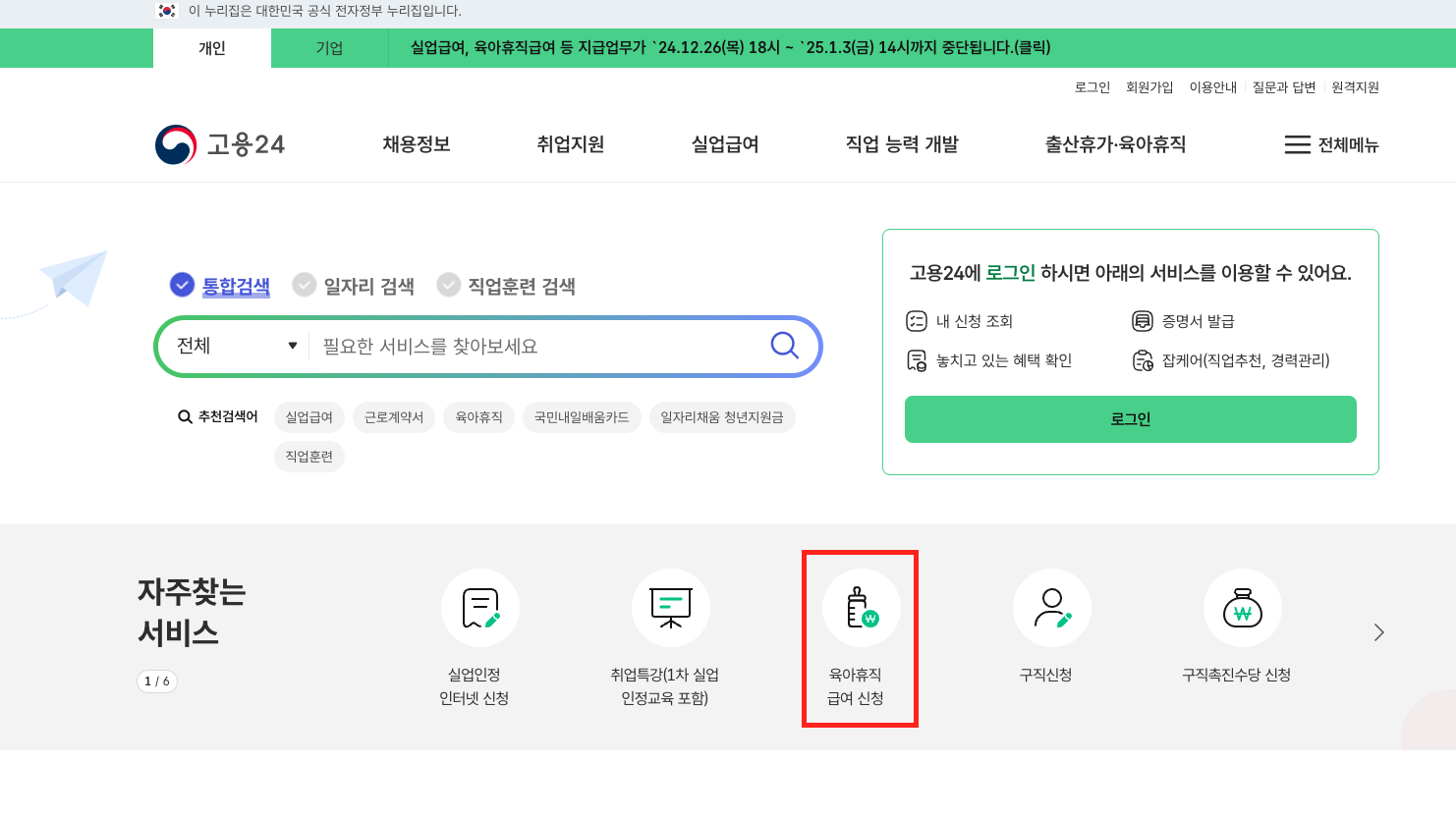 1. 고용보험 홈페이지 접속